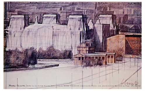 Christo es conocido como “artista envolvedor”, dado que en sus obras se dedica a envolver con una tela los objetos urbanos y rurales o naturales. Esta técnica comienza a utilizarla en las décadas de los 50 y 60. Durante esta época estaba muy de moda el Expresionismo Abstracto, pero Christo quería romper con esas nuevas fronteras, dedicarse a un arte más presencial, incluyendo todos aquellos elementos que puedan ser visto tanto en la pieza como a su alrededor. Estas obras constan de tres fases: imaginación, realización y memoria. Cuando tiene la idea de su nuevo proyecto hace collages, dibujos y maquetas a escala, las cuales son vendidas y así el dinero recolectado es invertido en la obra real, combinando también todas aquellas técnicas artísticas. Para terminarlas hacía un trenzado, un nudo o las ataba con cordeles, esto podríamos interpretarlo de manera en que cierra la pieza, por tanto si la abriésemos y mirásemos lo que hay dentro, estaríamos destrozándola.