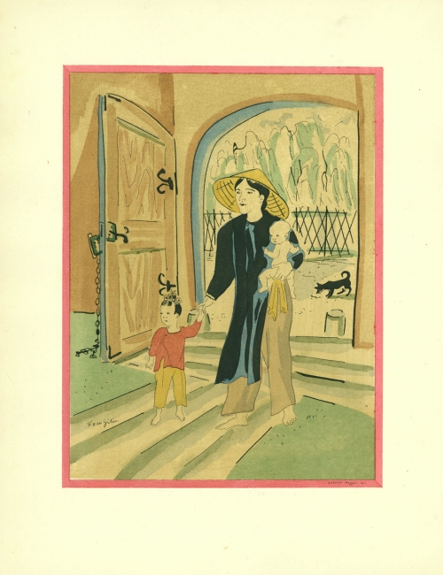 Esta obra pertenece a Tsuguharu Foujita y muestra una litografía de su obra “El Sueño” donde podemos ver a una mujer recostada en una cama completamente desnuda. Esta mujer muestra sus atributos y curvas pero no su rostro. Alrededor de la cama vemos animales de diferentes especies que la contemplan, como gatos, perros y palomas.