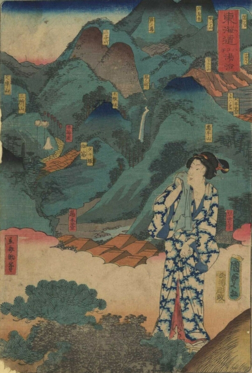 Serie de Vues fameuses du Tokaido. Les bains chauds (onsen) d´Hakone